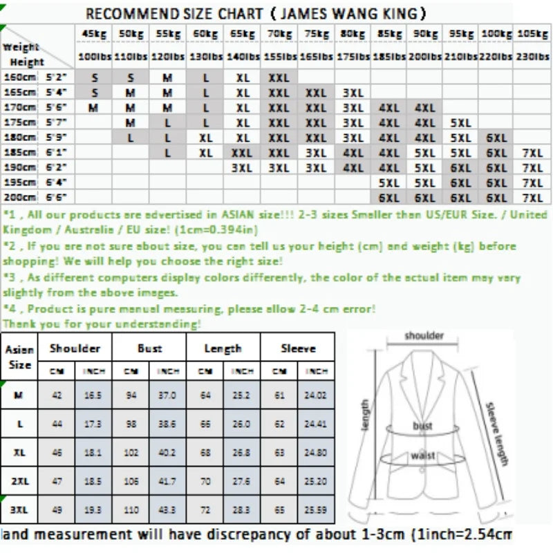 | Asian Size | Shoulder (cm / inch) | Bust (cm / inch) | Length (cm / inch) | Sleeve (cm / inch) |