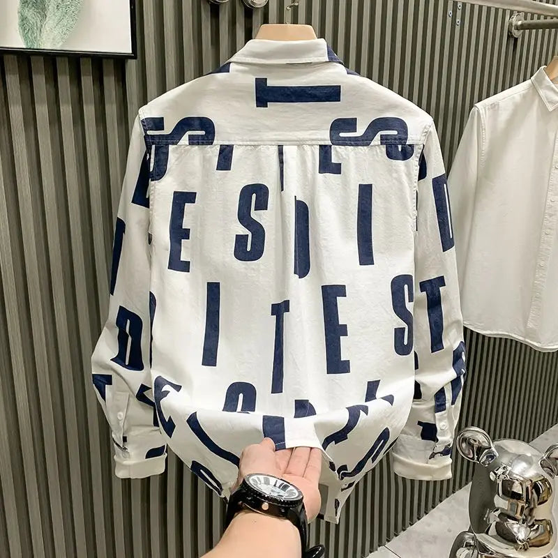 Mens Vintage Graphic Shirt Oversized Button Up Long Sleeve Casual