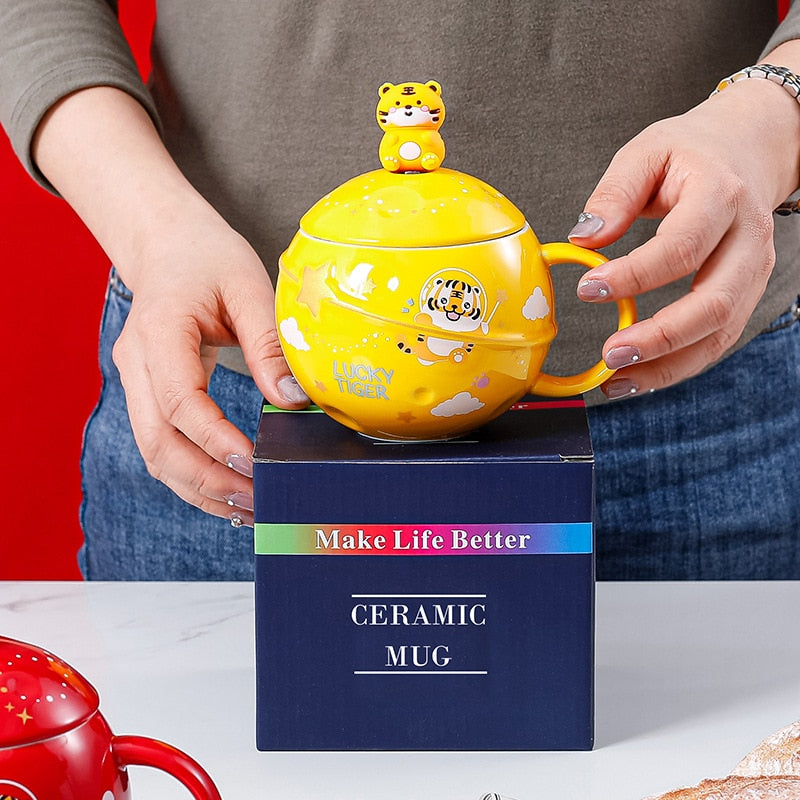 Mug with Spoon Lid Lovely Astronaut Mugs Astronaut Moon