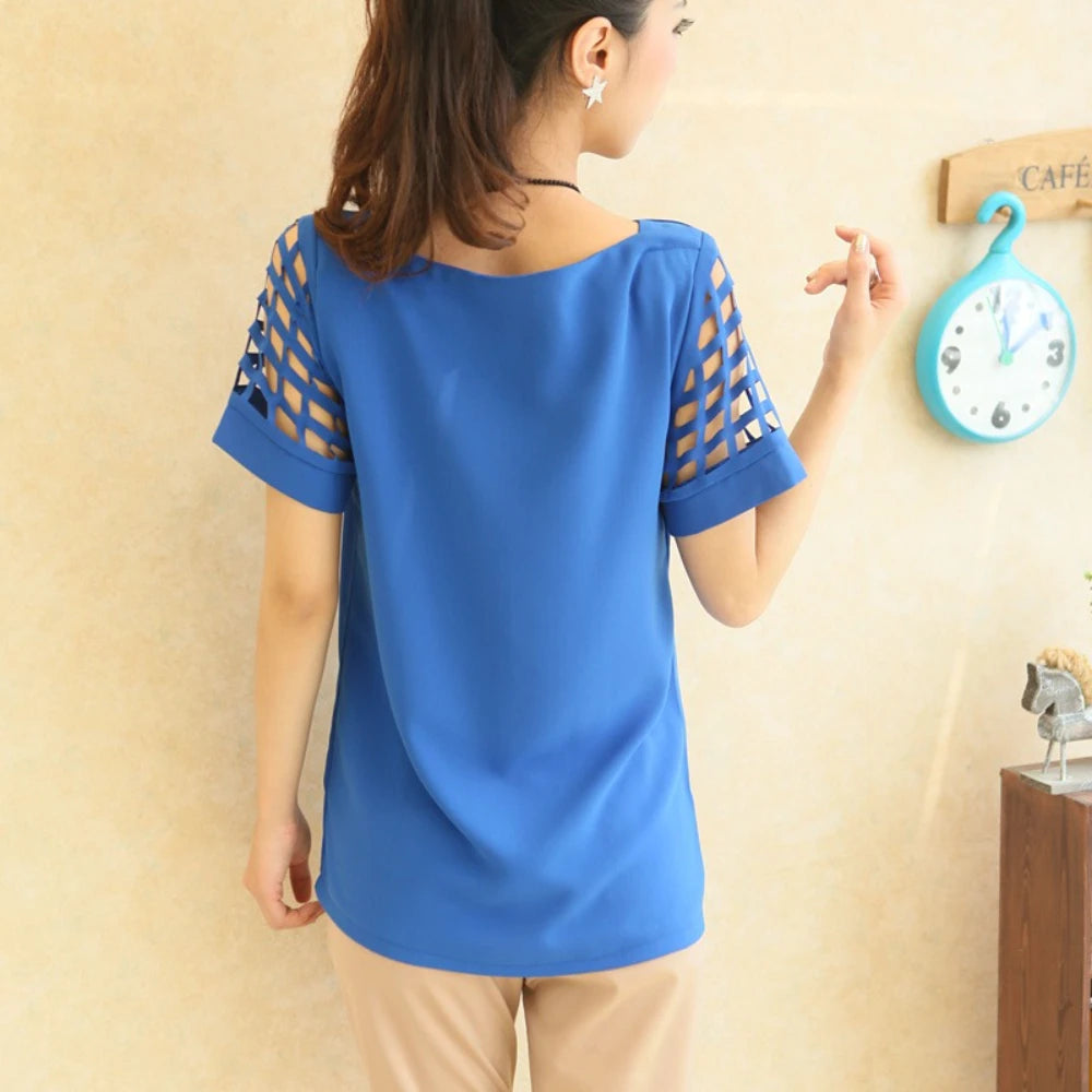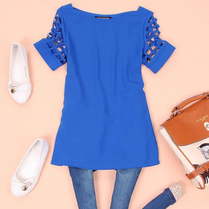Off Shoulder Blouse Women Hollow Sleeve Summer Loose Top