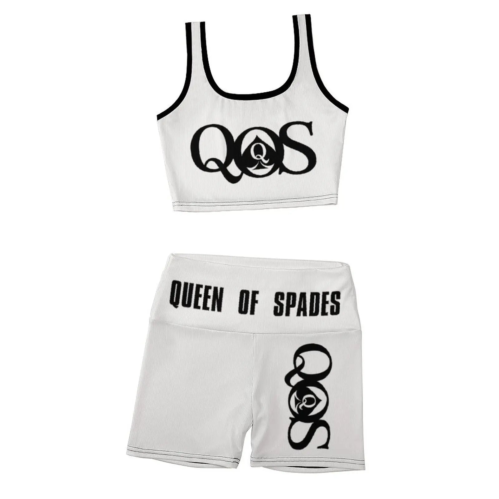 QOS Pattern Women's Workout Set High Waist Shorts and Sport Bra 2-Piece