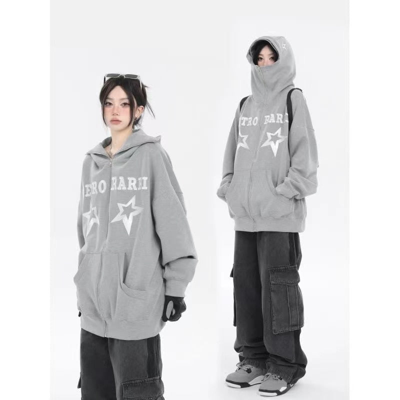 Star Letter Zip Up Sweatshirts Y2K Hoodie Streetwear Hooded Harajuku