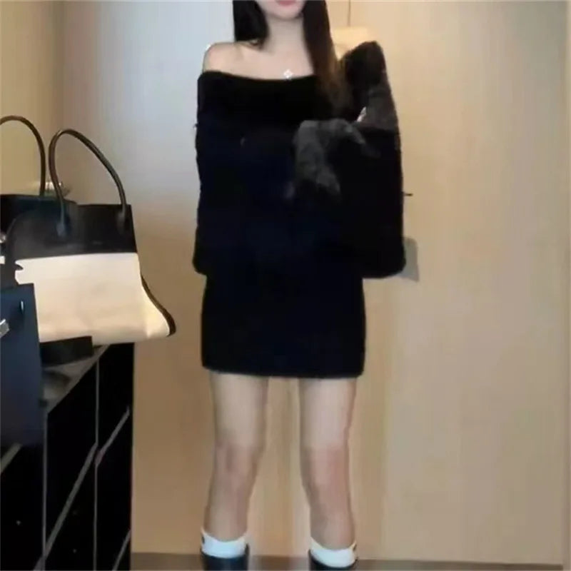 Women’s Off-Shoulder Knit Sweater – Loose Splice Pullover for Fall & Winter