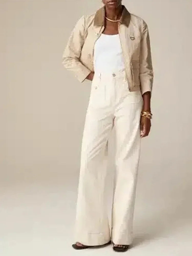 Womens Casual High Rise Patch Pockets Washed Flared Jeans