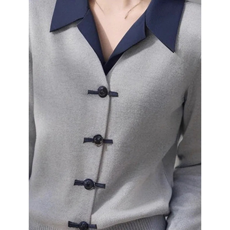 Womens Collared Cardigan Sweater Jacket Colorblock Knit Fall Coat