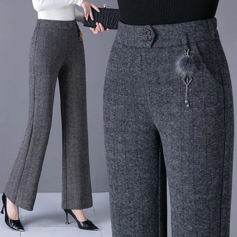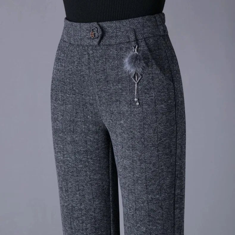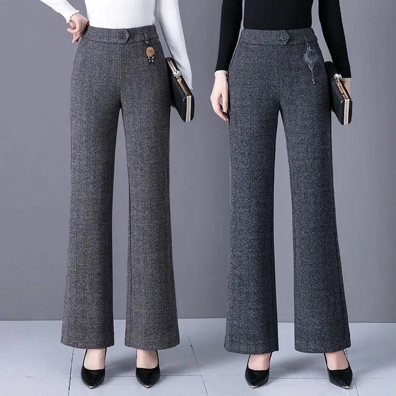 Womens Fleece Lined Pants Plus Size Elastic Waist Winter Casual