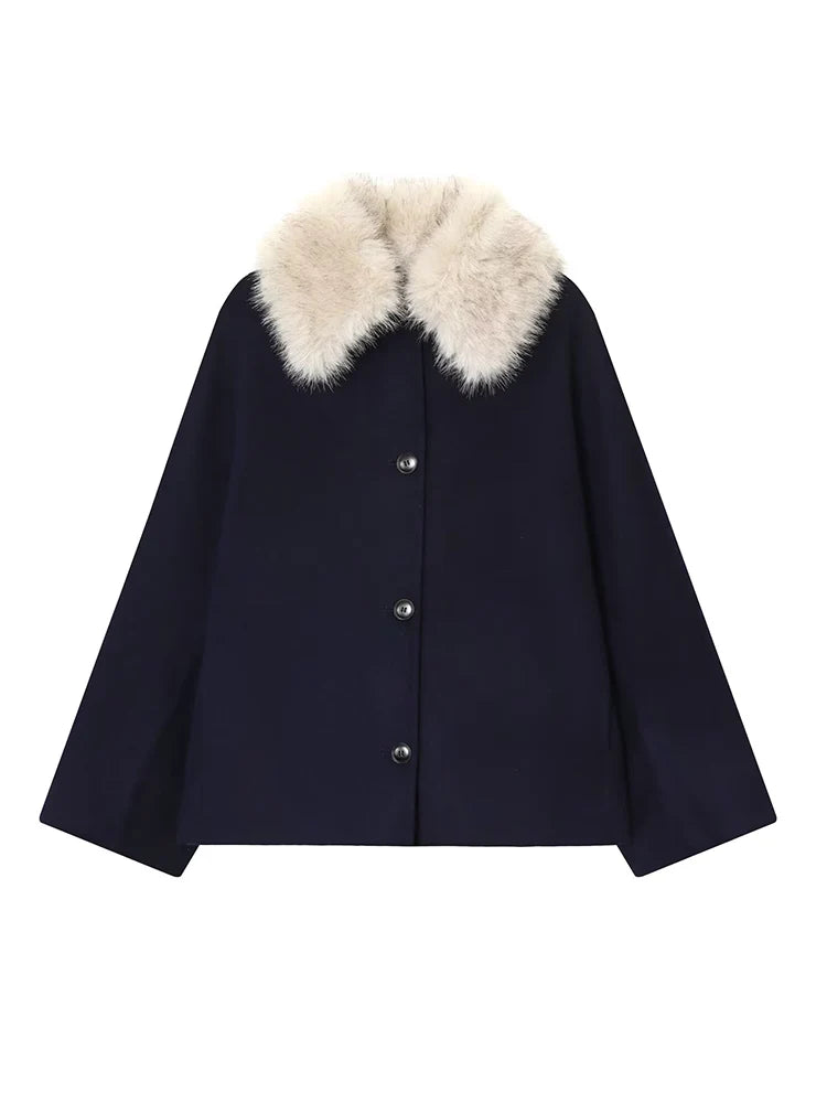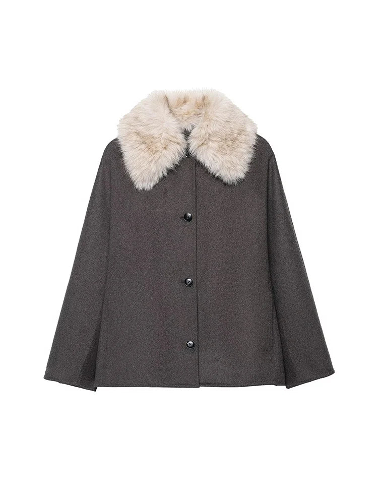 Womens Fur Collar Jacket Button Front Long Sleeve Winter Coat Street