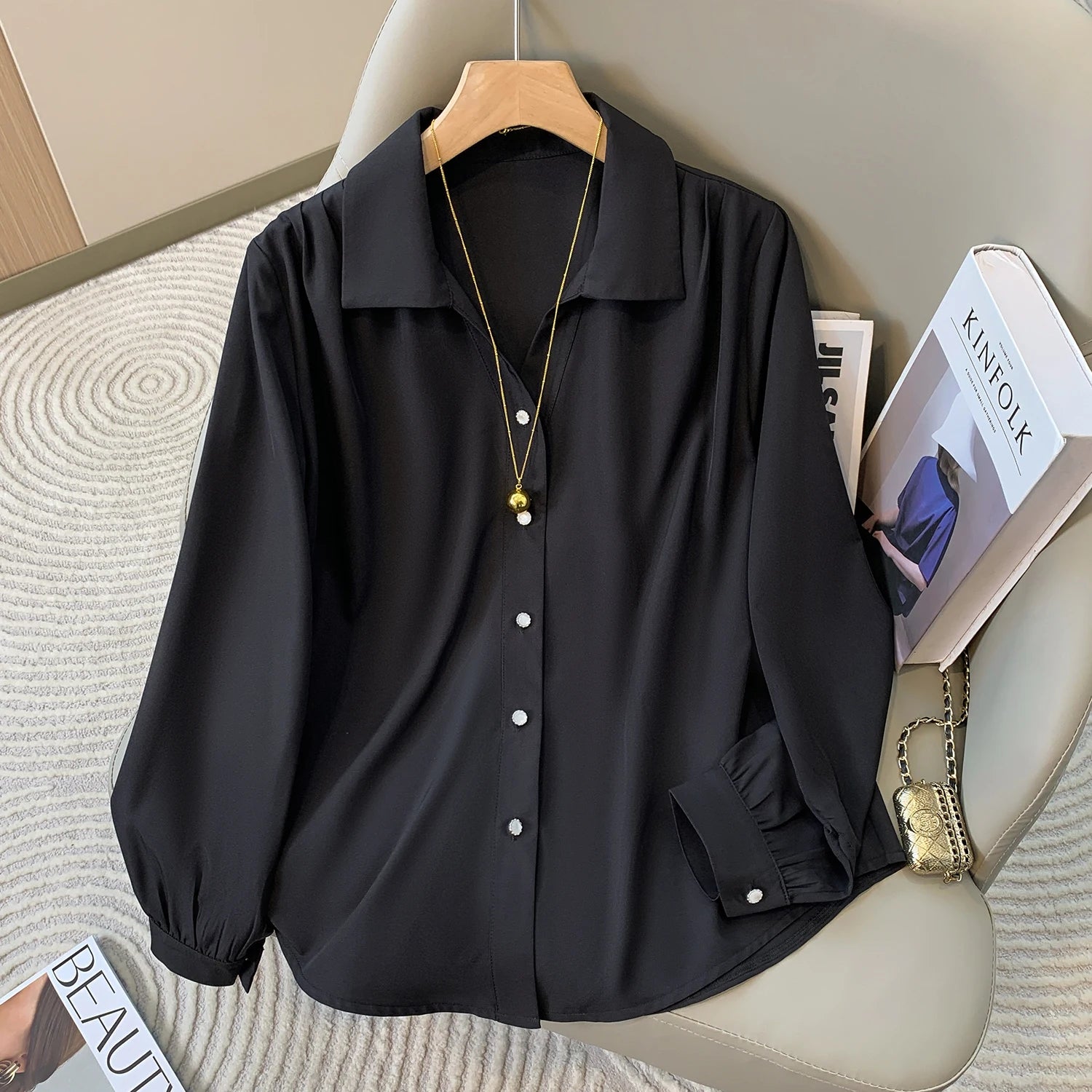 Womens Plus Size Blouse Long Sleeve Solid Spring Minimalist Shirt