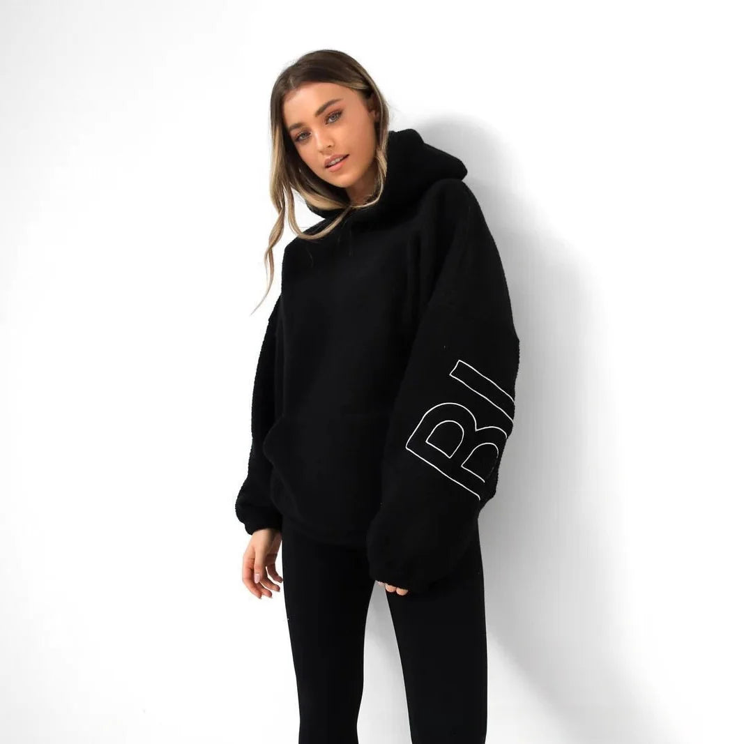 Womens Sherpa Fleece Hoodie Oversized Pullover Sweatshirt Fall Winter