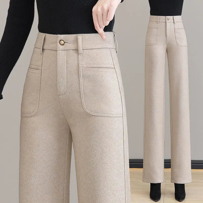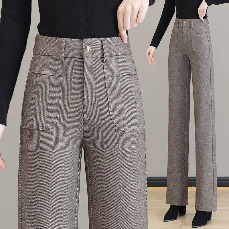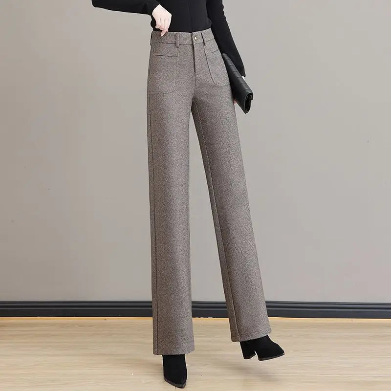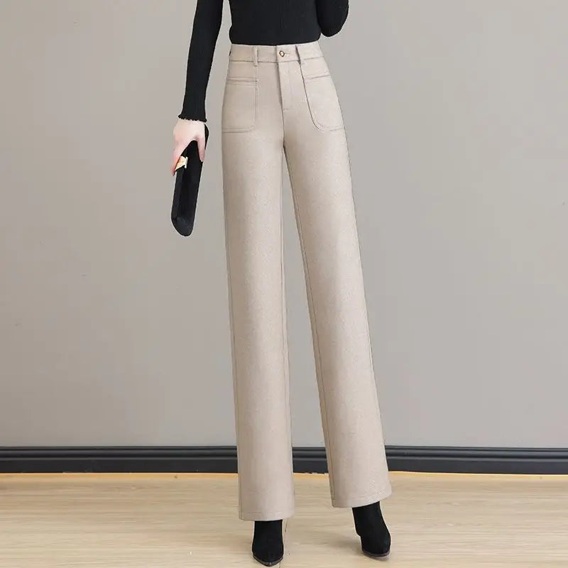 Womens Wool Blend Wide Leg Pants High Waist Straight Fall Trousers