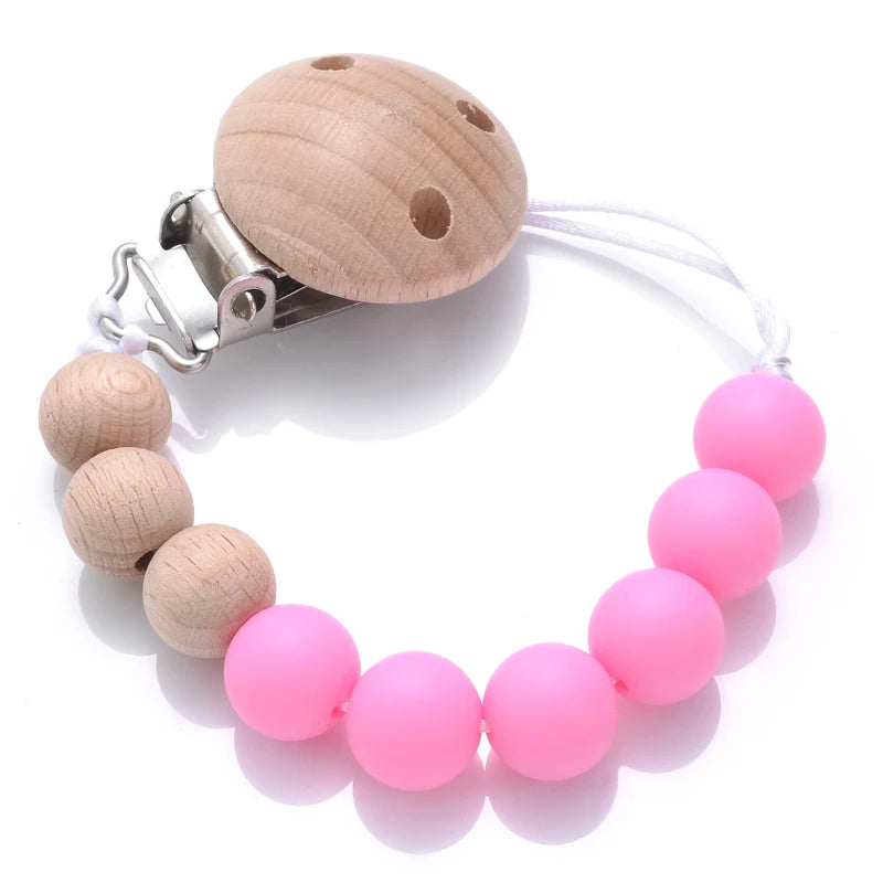 Wooden Pacifier Clip Silicone Beads Baby Teether Toy